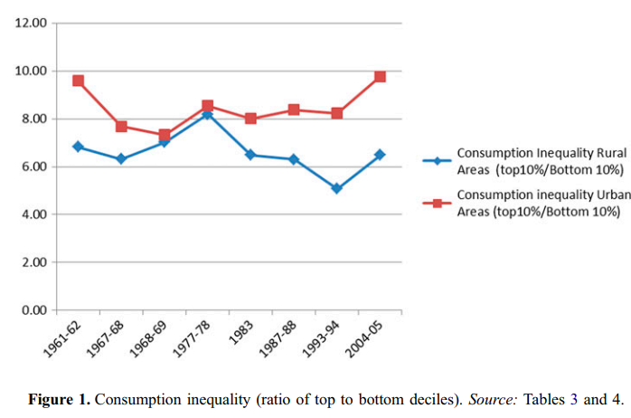 - Rate of increase in Consumption inequality has been the fastest